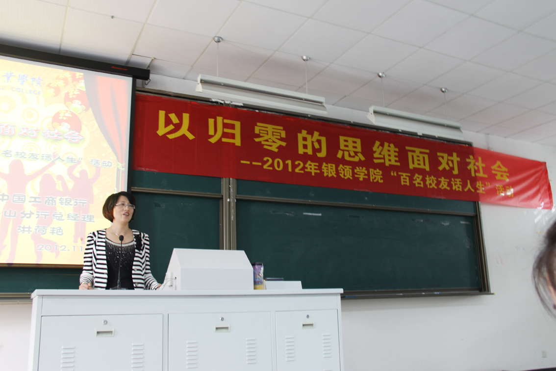会上,洪荷艳首先感慨时光,回忆了30年前的自己与30年前的金院,同时感谢金院培养了自己工作严谨、奋发向上的精神信念。接着,她就自己的工作经历与经验向同学们提出了五点建议:第一,心中无我。要有好的心态,不卑不亢,不要清高,放下身段,从零开始,尽快融入社会,主动与同事接触,学习他人的业务经验,正确处理好人际关系,一步一个脚印地从基层做起;第二,眼中无钱。不过分看重金钱与物质,不斤斤计较,有爱行如家的精神境界;第三,心无杂念。要专心致志,集中精力,做到“用心办事、用情做事、精细行事”;第四,朝中无人。要靠自己的实力,努力学习与工作,成为岗位的专业人才;第五,学无止境。要把每一天当作新的开始,把每一项工作当作新的起点,把公司学到的知识运用到社会实践上。此外,洪荷艳还亲切地与员工进行了互动交流,为员工解答学习、生活、工作等方面的困惑。最后,她希望同学们能坚持自己的梦想和信念,终有一天能到达成功的彼岸。整场活动气氛愉悦融洽,员工们纷纷表示受益匪浅。
