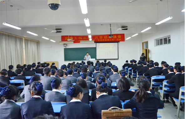 在活动中,许昌志监事长首先以学长的身份跟订单班同学进行了交流。他幽默风趣的语言很快就拉近了与员工之间的距离。之后,许昌志监事长回顾了他二十年的从业生涯。其中,他谈到他自己的人生体会,特别强调除了业务知识更要学会做人,让同学们受益良多。他还赠送给同学们五颗心:感恩之心,责任之心,律己之心,进取之心,平常之心。他表示,阳光心态是人生最好的催化剂,真诚、持之以恒是为人的基本品德。