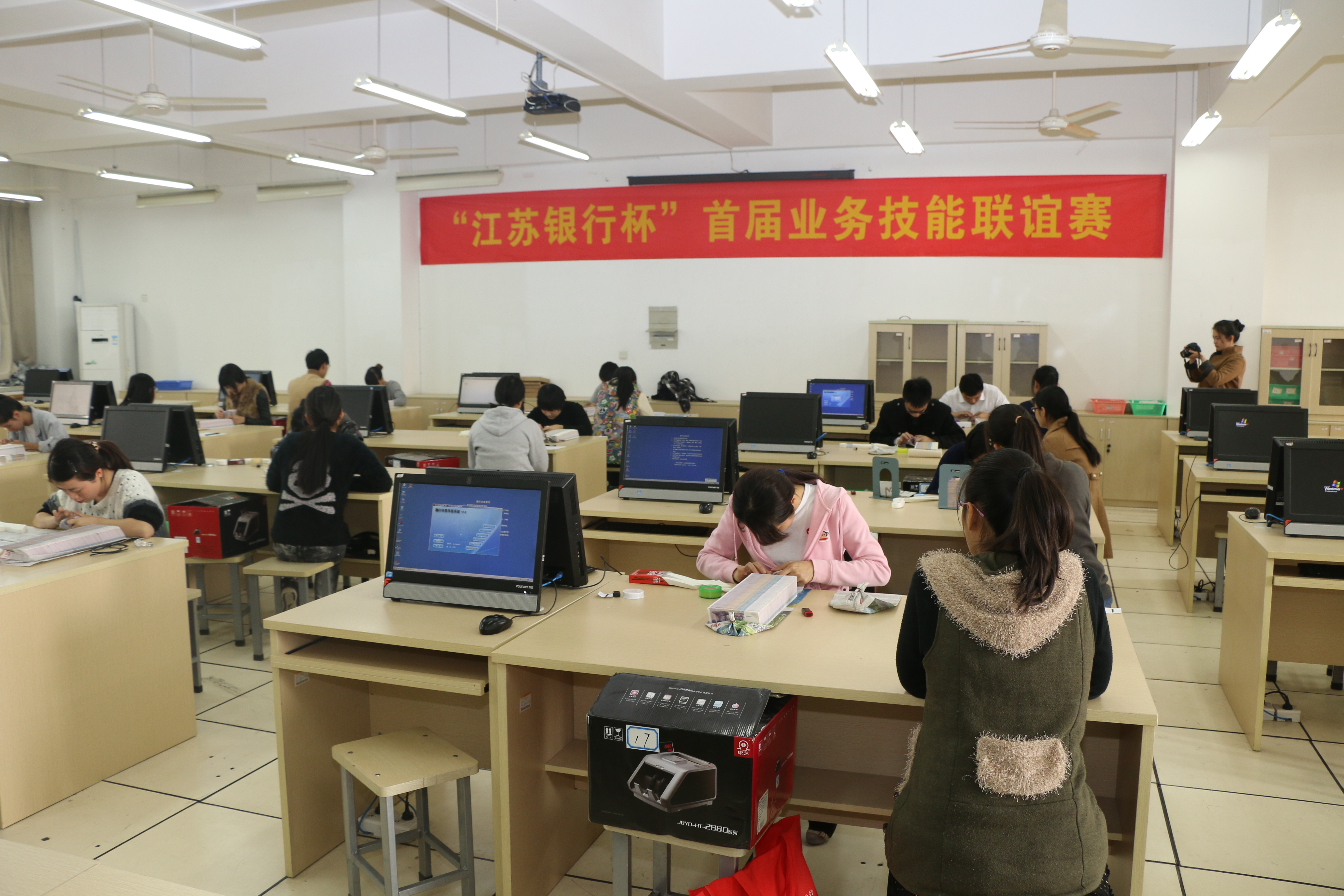 随着比赛号令一下,传票输入比赛的选手左手翻页不停歇,右手击键如行云,做到蜻蜓点水、心中有数。点钞比赛时,只见钞票在指尖纷飞,起把、清点、扎把、盖章等环节做到训练有素、一气呵成。比赛过程中,参赛选手规范操作、争分夺秒,“指尖如飞、我快谁追”的比赛现场展现了选手们高超的技能水平和良好的精神风貌。经过激烈角逐,江伊、鲁梦琴、袁佳文三位同学分别荣获传票输入比赛项目的前三名,胡莹莹、潘琴涯同学分别荣获单指点钞比赛项目的第一名和第三名。