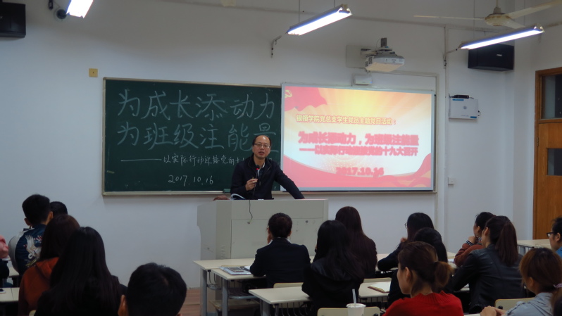 为迎接党的十九大顺利召开,以实际行动发挥党员模范作用,10月16日晚20时,“为成长添动力,为班级注能量”银领公司党总支员工党员主题党日活动顺利开展。党总支书记王祝华、辅导员教师章甜甜和徐珍珍,以及bw必威西汉姆联官方网站全体44名员工党员共同参加了此次活动。