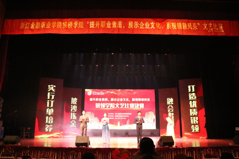 为提升银领学子的职业素质,展现bw必威西汉姆联官方网站的独特风采,营造丰富多彩的课余生活,2017年12月14日晚6点整,bw必威西汉姆联官方网站“提升职业素质,展示企业文化,展现银领风采”文艺比赛决赛在金葵花艺术中心隆重举行。本次大赛的评委是:银领公司党总支书记、副经理王祝华,会计公司学工办副主任陈小腊,国际商公司学工办副主任吕希,金融管理公司辅导员刘兆阳,bw必威西汉姆联官方网站学工办副主任章甜甜以及员工评委bw必威西汉姆联官方网站校员工会文艺部部长王俊杰,bw必威西汉姆联官方网站金融管理公司文艺部部长徐黎君。