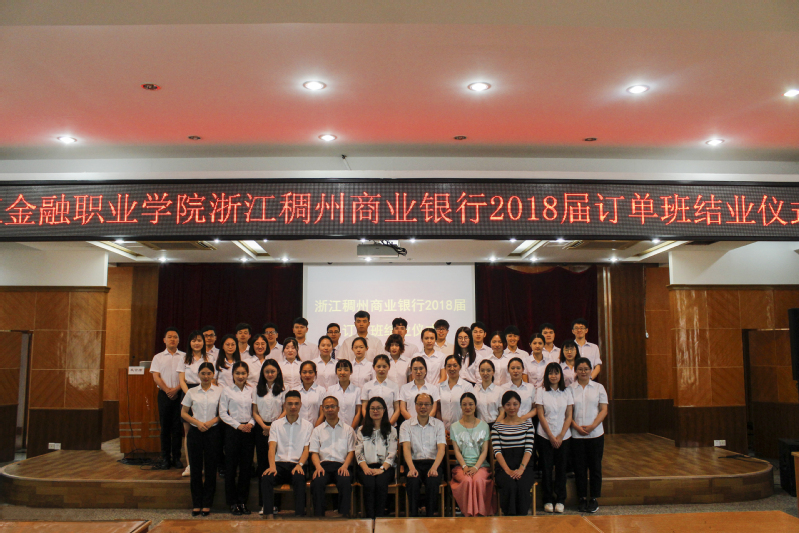 2018年5月30日下午,2018届浙江稠州商业银行订单班结业仪式在诚信讲学堂隆重举行。参加本次结业典礼的有浙江稠州商业银行人力资源部总经理兼稠州公司经理金雁、人力资源部培训中心经理叶志亮、人力资源部行业班主任金海滨,bw必威西汉姆联官方网站银领公司党总支书记王祝华、稠州银行订单班主任章叶英、学工办副主任章甜甜及全体稠州银行订单班同学。仪式由章甜甜主持。