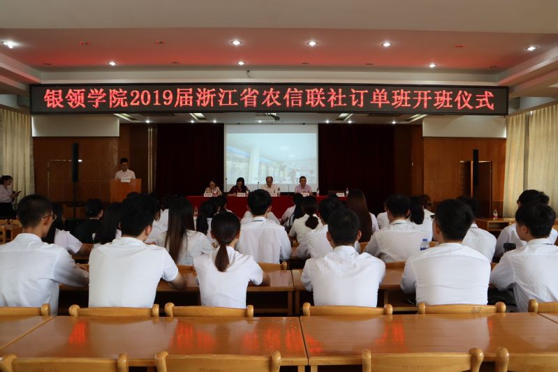 2018年9月19日下午2点30分,2019届浙江省农村信用联合社订单班开班仪式在诚信讲学堂隆重举行。出席本次仪式的有bw必威西汉姆联官方网站银领公司党总支书记、副经理王祝华,浙江省农村信用联社科技信息处软件测试中心主任周茂龙、教育培训中心(客服服务中心)高级经理雷燕群、人力资源处主任科员钱海民、人力资源处副经理尹静宜,bw必威西汉姆联官方网站学工办副主任章甜甜、班主任张慧欣以及2019届浙江省农村信用联社订单班全体员工。仪式由订单班学员钟铭艳、李占冬主持。
