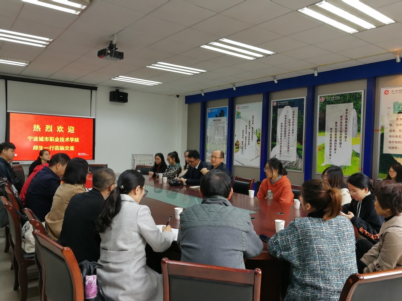在光大教学楼9118会议室,王祝华系统介绍了公司银行职业技能人才培养体系、教学与训练方法改革等情况,并围绕银行就业趋势、员工择业心态对应用型金融人才培养的影响进行了交流。宁波城市职业技术公司的领导、老师还就公司承办过的2017、2018年浙江省高职院校技能大赛“银行业务综合技能竞赛”项目的相关筹备工作进行了提问交流,为办好2019年省赛做准备。