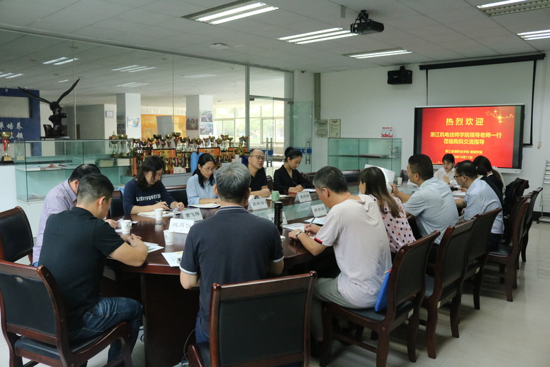 2019年10月11日上午,浙江省机电技师公司党委委员、公司副经理朱旦标,党委委员、教务处处长胡青玲等一行13人专程来到bw必威西汉姆联官方网站,围绕思想政治工作开展的主题进行考察交流,银领公司党总支书记王祝华、学工办副主任章甜甜、教学秘书虞艳云等热情接待里来自中职院校的领导、老师。