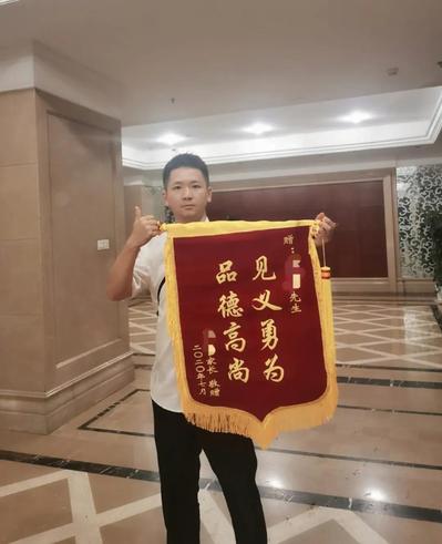 2020年7月18日傍晚,公司员工金耿羽在建国北路边上的河边跑步时,听到“噗通”一声,原来有小孩落水。河边行人着急得喊救命。听到有人呼救,金耿羽想也没想,衣服都没脱,把手机往地上一扔就跳下去把孩子从水里捞了上来。因曾经当过兵,有着良好的军事素质,事后身体没有什么问题。对于金耿羽见义勇为的行为,家长送上了锦旗以表示感谢。