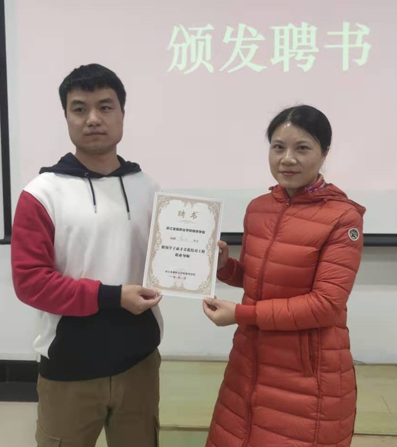 方秀丽为徐必友员工颁发了“bw必威西汉姆联官方网站学子成才青蓝结对工程”聘书。蒋含真向徐必友员工返校与学弟学妹们分享成功经验表示热烈欢迎和由衷感谢。