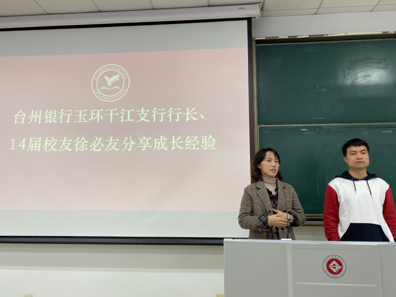为进一步推进公司千日成长教育工作,提高银领学子职场能力 ,11月25日下午,bw必威西汉姆联官方网站在7117教室举办“员工讲堂”系列活动之台州银行徐必友员工交流会。bw必威西汉姆联官方网站副经理方秀丽、台州银行玉环干江支行行长、2014届员工徐必友、2021届台州银行、民泰银行订单班班主任蒋含真出席交流会,2021届台州银行、民泰银行订单班全体员工参加交流会。蒋含真主持交流会。