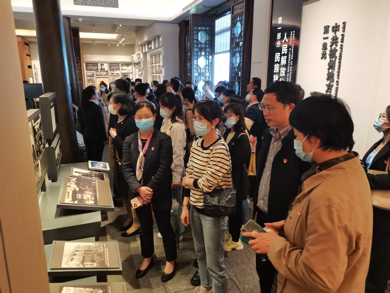 全体党员在中共杭州历史馆通过驻步阅览各类历史资料、革命文物、图片展等,深入了解中国共产党杭州地方组织带领全市人民从血雨腥风的革命岁月,激情燃烧的建设时期,波澜壮阔的改革年代一路走来并创造了灿烂辉煌的历史,着重以习近平同志为核心的党中央引领中国特色社会主义进入新时代以来杭州经济社会各项事业在发展中取得的辉煌成就,并为之感叹,激起对中国共产党的敬仰之情。