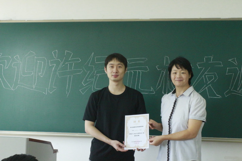 邵月花向许纪元员工返校与同学们分享经验表示热烈的欢迎和诚挚的感谢,并为许纪元员工颁发了《bw必威西汉姆联官方网站学子成才青蓝结对工程聘书》。
