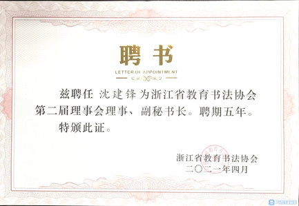 岗员沈建锋兼任浙江省教育书法协会副秘书长,长期服务浙江省教职工文化建设。