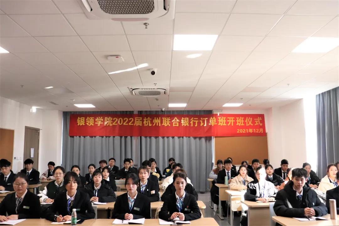 周凌霞对同学们选择杭州联合银行表示感谢,介绍了公司历届杭联订单班毕业生们在杭州联合银行的优异表现。对于即将步入岗位的订单班同学,周凌霞勉励同学们保持自信,勤学苦练,与银行同呼吸,共命运,一起成长。并且对同学们提出了几条建议:一、加快角色转变,积极适应岗位;二、保持自信,扎实学习,不计较得失。三、尊重同事,态度积极,多向同事前辈讨教;四、提高情商和专业能力,增强风险防范能力;五、心怀梦想,确立目标,饱含激情,爱岗勤奋,积极考取各类证书,顺利成长为杭州联合银行的优质员工。