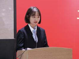 员工代表马园园代表温州银行订单班全体同学感谢温州银行和公司为学子们搭建的订单平台,表示全体学子将秉承“崇德尚礼,精技笃行”的院训,在岗位上严格自律,认真学习专业知识,苦练技能,不负行业领导和老师的厚望。