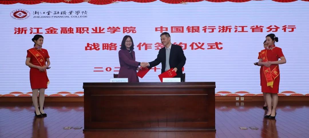 会议举行了产教融合、校企合作签约仪式。郑亚莉代表公司分别与中国银行浙江省分行、杭州银行、杭州联合银行、安吉农村商业银行签订了战略合作协议。