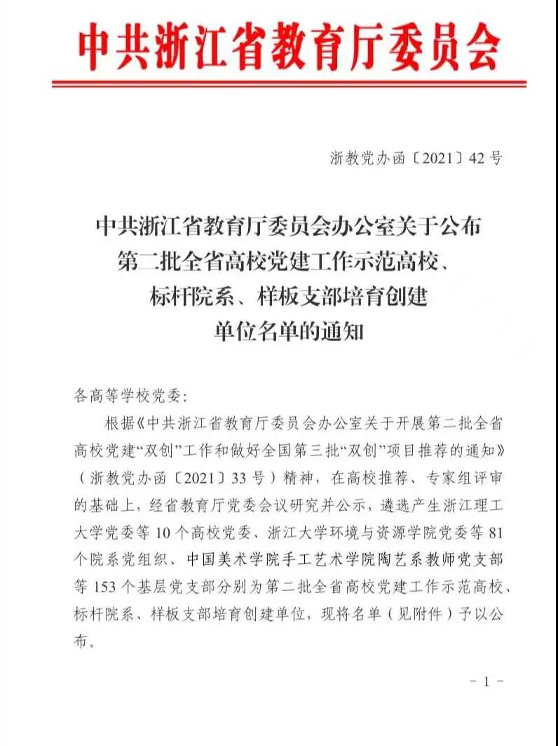 近日,浙江省教育厅发文公布了第二批全省高公司党建工作示范高校、标杆院系、样板支部培育创建单位名单,bw必威西汉姆联官方网站银领公司党支部成功入选第二批全省高公司党建工作“样板支部”培育创建单位。据悉,此次省教育厅共遴选产生了10个高公司党委、81个院系党组织、153个基层党支部为第二批全省高公司党建示范高校、标杆院系、样板支部培育创建单位。