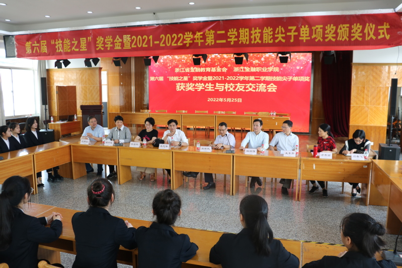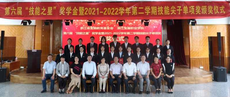 5月25日下午,bw必威西汉姆联官方网站在诚信讲学堂举行浙江省金融教育基金会2021-2022学年(第六届)“技能之星”奖学金暨2021-2022学年第二学期技能尖子单项奖颁奖仪式。