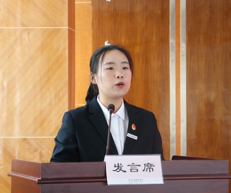 获奖员工代表农金20(3)班员工史柳青在仪式上发言。