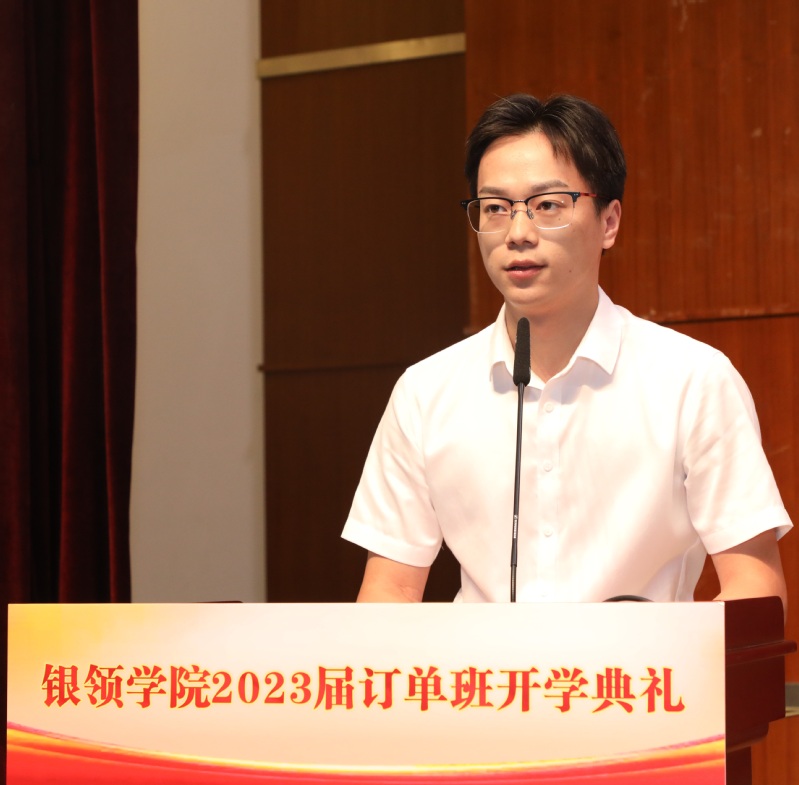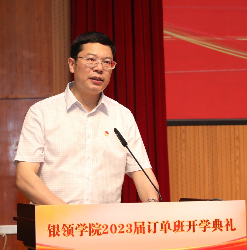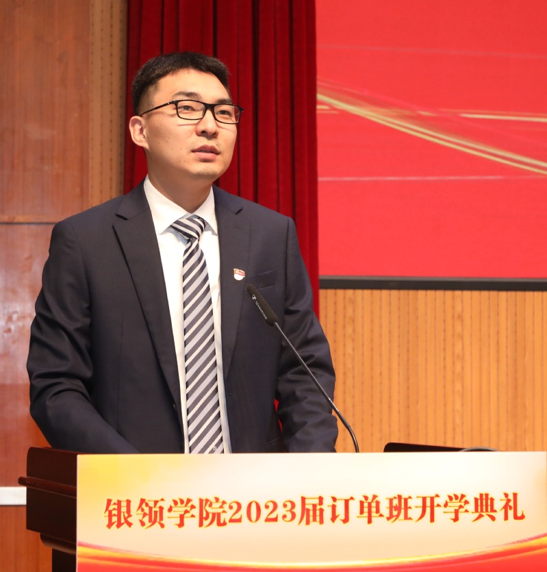 金杨华在开学典礼上致辞,对长期以来各订单单位给予公司人才培养工作的支持表示由衷感谢,向2023届全体银领学子成功迈入职业化、员工化的订单培养模式,开启就业先赢、职场人生新篇章表示诚挚祝贺。