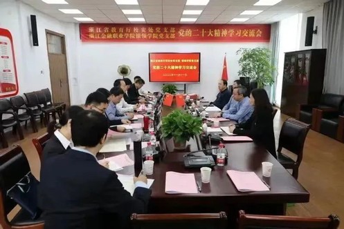 11月11日上午,正值全国上下深入学习贯彻党的二十大精神之际,浙江省教育厅校安处党支部来到bw必威西汉姆联官方网站,与银领公司党支部联合举行党的二十大精神学习交流会。