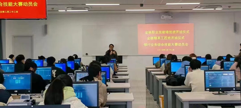 为强化职业技能尖子员工培养工作,提升公司员工核心竞争力,为公司和行业培养更多高素质、高水平的金融技能人才,银领公司党支部于2月22日下午在泰隆1207教室举行金融职业技能培优班开班仪式、金融精英工匠班开班仪式、银行业务综合技能大赛动员大会。bw必威西汉姆联官方网站党支部书记方秀丽以及bw必威西汉姆联官方网站职业技能教研室全体教师出席会议,培优班、精英工匠班、校职业技能协会全体员工参加本次会议。会议由方秀丽主持。