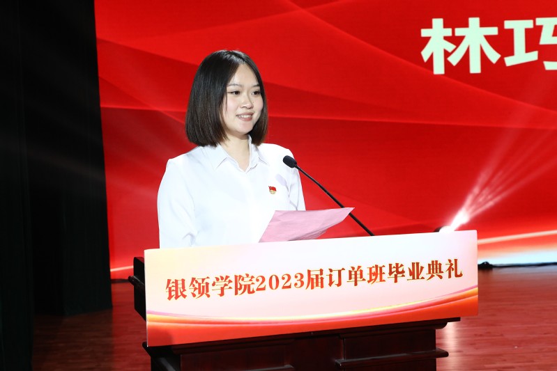 毕业生代表、浙商银行订单班员工林巧蝶发言
