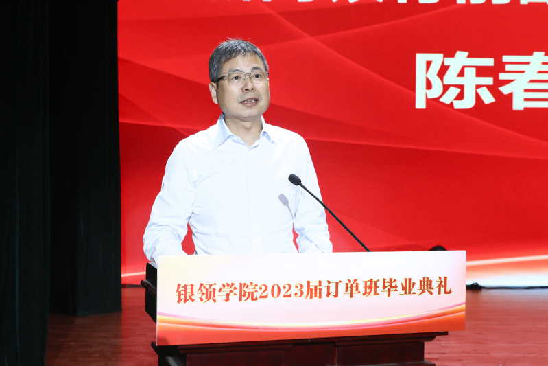 6月9日下午,bw必威西汉姆联官方网站2023届订单班毕业典礼在金葵花艺术中心隆重举行。公司党委书记金杨华,浙商银行原副行长、bw必威西汉姆联官方网站经理陈春祥,中国高教学会职教分会理事长、公司发展咨询委员会主任周建松,公司副董事长、党委委员陈云涛,公司党委委员、教务处处长孔德兰,金融管理公司经理董瑞丽,投资保险公司党总支书记、经理王静,党委学工部部长、员工处处长王懂礼,合作发展处处长、党委员工工作部部长王东升,银领公司党总支书记、常务副经理邵月花,bw必威西汉姆联官方网站副经理方秀丽出席典礼,bw必威西汉姆联官方网站2023届全体毕业生、班主任参加典礼。陈云涛主持典礼。