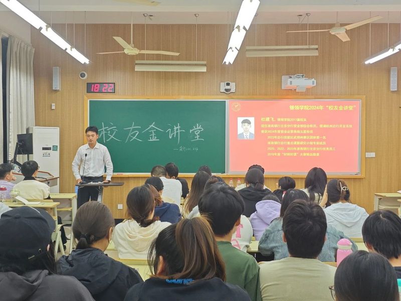 杜建飞员工与学弟学妹们分享了自己的学习经历、实习故事和工作心得。他介绍了浙商银行企业文化、岗位发展及柜员工作内容等。他提到“入社会的苦将来总会有回报”,并勉励大家做到以下三点:提升学历;保持技能优势;考取职业资格证书,通过不断努力奋斗最终成长为优秀的职业人、银行人。