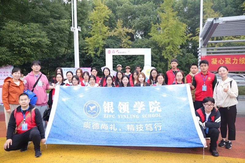 毅行路上欢声笑语不断,银领学子们徒步在美丽的钱塘江畔,形成一道亮丽的风景线。