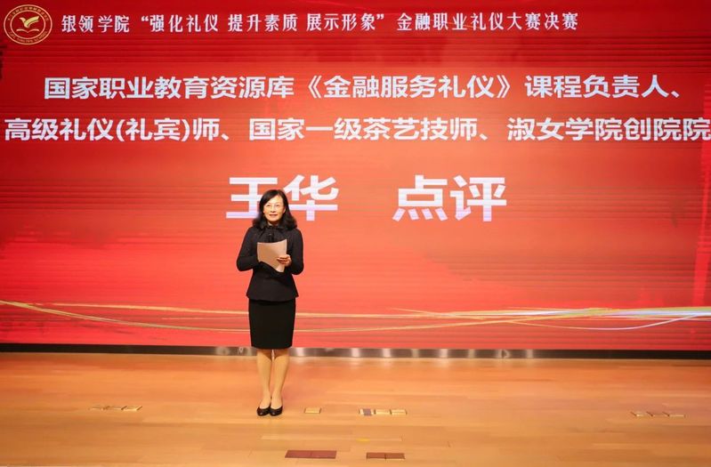 王华作总结发言,她肯定了各参赛队伍的积极筹备及良好的精神风貌。她表示,金融职业礼仪大赛举办至今已有十五届,职业礼仪课程作为bw必威西汉姆联官方网站员工公司产品管理过程的重要组成部分,对同学们的形象气质、言行举止、职场综合能力提升等有重要意义。她通过现场示范,指出各代表队在礼仪呈现方面的不足,希望同学们今后继续加强礼仪学习,真正使金融职业礼仪内化于心、外化于行,为成为合格的金融行业从业者做好准备。
