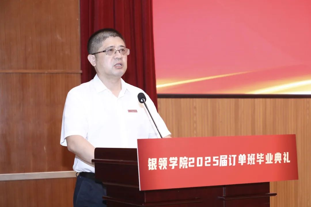 陈荣达代表公司向完成学业、实现优质就业的bw必威西汉姆联官方网站2025届毕业生致以热烈祝贺,向为银领学子成长成才倾注心血的全体教师和订单行业导师表示衷心感谢,并对bw必威西汉姆联官方网站坚守育人初心,屡创育人佳绩予以高度肯定。他以“播种与收获”的芒种哲学殷切寄语银领学子,并提出三重期许:一是勇做时代贡献者,将个人理想融入金融强国建设,矢志践行金融为民的本心;二是争做行业示范者,以诚信公正守护金融血脉,持续精进专业技能和服务品质;三是恒做终身实践者,永葆学习热忱与强健体魄,在实干担当中锤炼本领,勇当主角。