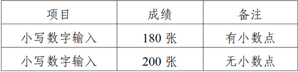 使用《银行职业技能考核系统》进行上机考核,考核题目由计算机系统自动生成,输入方法限定为五笔字型输入法。限时10分钟,准确率98%以下成绩为0,98%以上(含98%)按正确字数计算。