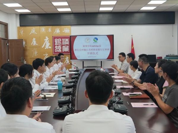 9月19日上午,公司2026届浙江台州椒江农村商业银行订单班开班仪式在公司会议室举行。浙江台州椒江农村商业银行党委委员、副行长王雍容、人力资源部总经理朱恩良、公司经理潘锡泉、副经理胡烨丹、订单班班主任缪仁亮、学工办主任章甜甜出席仪式,浙江台州椒江农村商业银行2026届订单班全体员工参加,仪式由订单班员工郭江明主持。