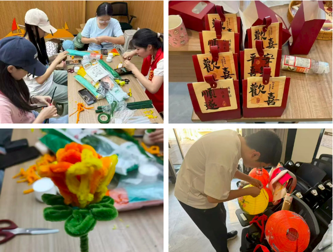 通过制作蛋黄酥、扭棒花、红灯笼、节日礼盒等,同学们不仅为社区增添了浓厚的双节氛围,更在实践中传承了传统文化。同学们纷纷表示,亲手制作后,感受到传统文化离自己很近,并体验了从“参与者”到“传承者”的转变。