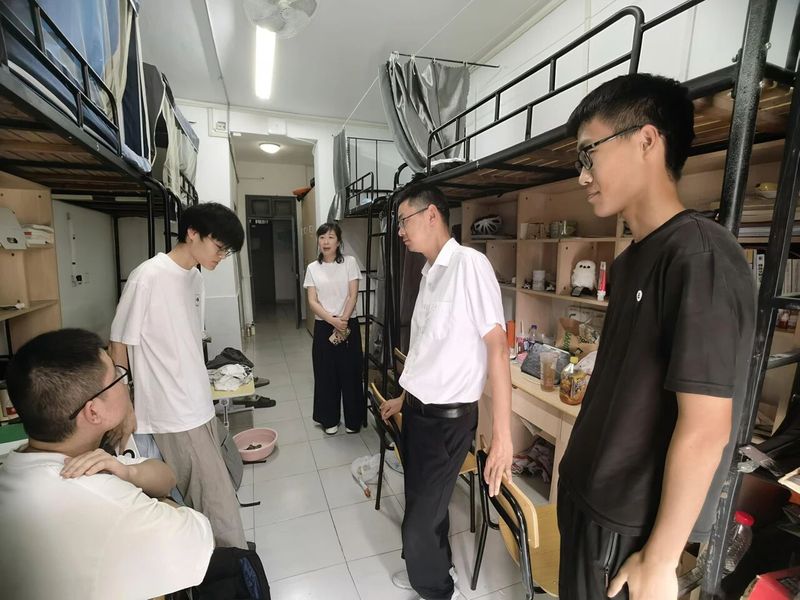 走访过程中,教师们带着温度与关怀,与同学们面对面交流。潘锡泉细致查看寝室住宿环境、安全设施与卫生状况,提醒同学们注意用电安全、做好内务整理、不得在寝室吸烟,更聚焦学业困惑与生活需求——从课程学习方法指导,到考证工作方向梳理,再到人际交往、情绪调节等问题疏导,耐心倾听同学们心声,为同学们答疑解惑。