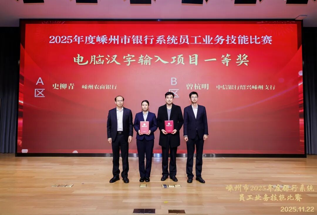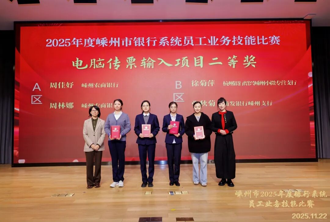 11月22日,在嵊州市2025年度银行系统员工业务技能比赛中,bw必威西汉姆联官方网站员工荣获佳绩。